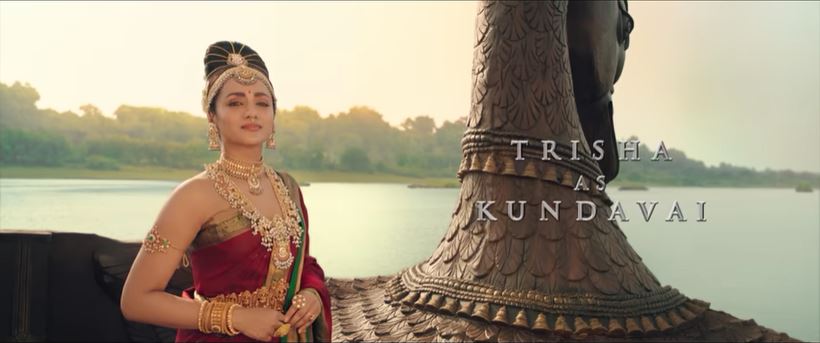 திரிஷாவை , கேமரா, படம் முழுக்க வெகு அருகிலேயே காண்பிக்கிறது. கண்கள், உதட்டசைவில் மட்டும் காட்டும் நடிப்பில், குந்தவையை ரசிகனுக்கு தெளிவாக அறிமுகப்படுத்தி விடுகிறார். ‘எங்கே தேவி சொல்வதை கேட்பவர் என்றால் ஆற்றில் குதியுங்கள்’ என்று சொல்லும்பொழுது குறும்பும், நந்தினியை நேரில் சந்திக்கும்பொழுது, உள்ளொன்று வைத்து புறமொன்று பேசும் ஆளுமையும், சிற்றரசர்களிடம், ஒவ்வருவொருக்கும் பெண் உள்ளது என்று சீண்டுகின்ற அரசியலும் என மிளிர்கிறார்.