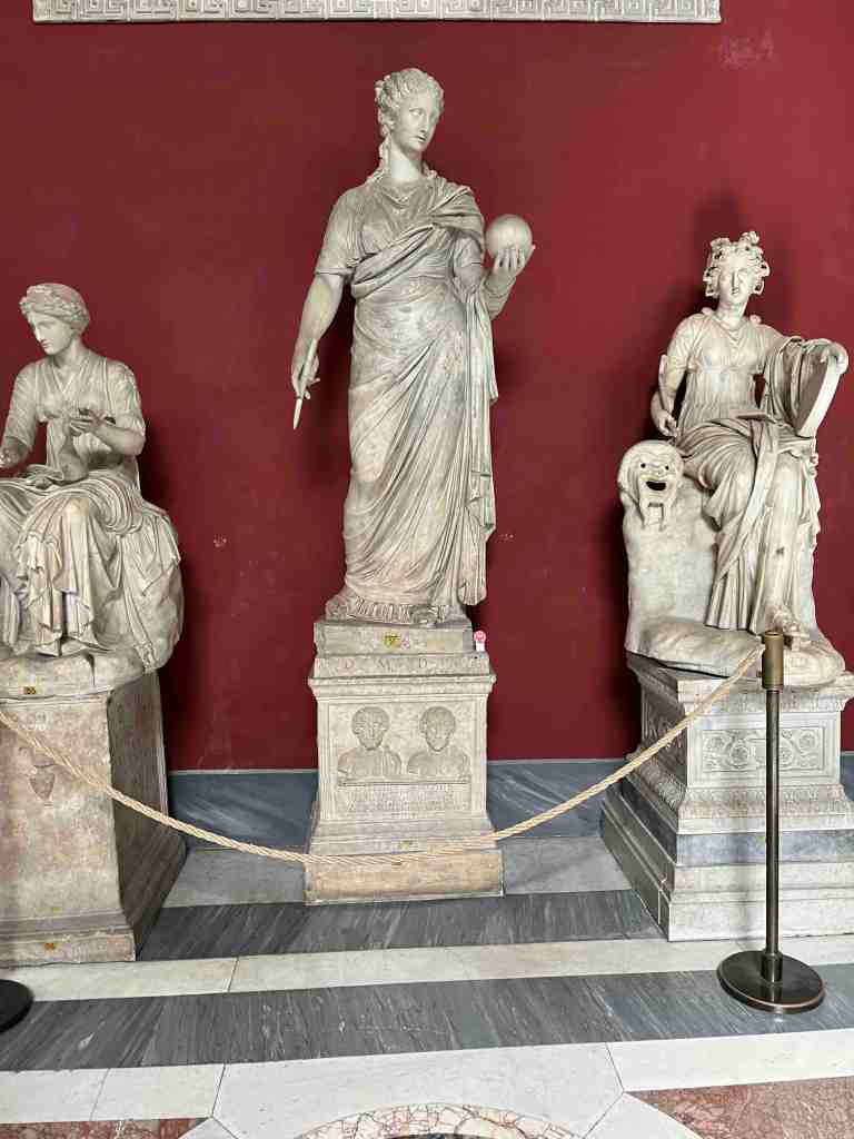 Hall of Muses என்ற மண்டபம் 1784 ஆம் ஆண்டு பொதுமக்களுக்காக திறக்கப்பட்டது. இந்த மண்டபம், டிவோலிக்கு அருகிலுள்ள காசியஸ் வில்லாவில் காணப்பட்ட Hall of Muses சிற்பங்களைக் காட்சிப்படுத்துவதற்காக வடிவமைக்கப்பட்டது. இந்த மியூசஸ் சிலைகள் ஒவ்வொன்றும் ஒரு கலைக்கு அல்லது ஆற்றலுக்கான தேவதைகள் எனலாம். உதாரணத்திற்கு இடது புறத்தில் உள்ள காகிதச் சுருளை வைத்திருப்பது போன்ற சிலை, வரலாற்றுக்கான தேவதை கிளியோ எனவும், இடையில் உள்ள, யுரேனியாவை வானியல் சாஸ்திரத்திற்கான தேவதை எனவும் வரையறுத்திருந்தார்கள்.