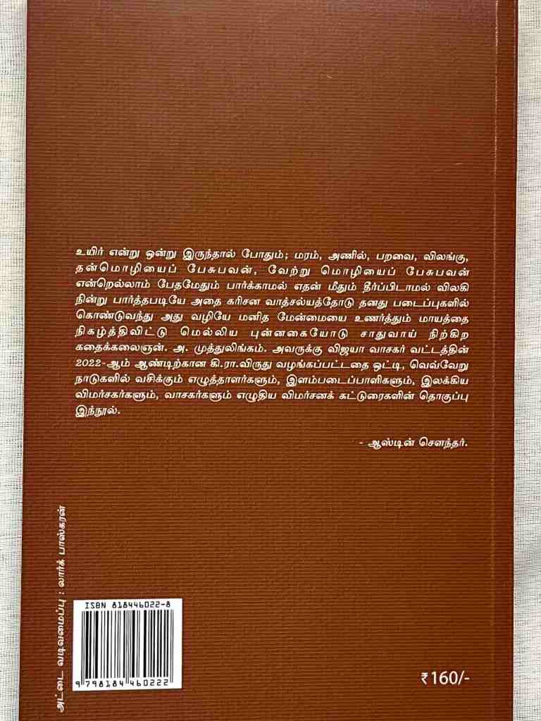 தமிழில் தலைசிறந்த வாசகர்களில் ஒருவரான, கோவை விஜயா பதிப்பகம் பதிப்பாளர், விஜயா வேலாயுதம் முன்னெடுப்பில் கொடுக்கப்படும் ‘கி.ரா. விருது ’-விற்கு, தனியார் இலக்கிய அமைப்புகளால் தமிழ் நாட்டிலிருந்து கொடுக்கப்படும் விருதுகளில் தலைமையான இடம் உண்டு . 2022-ஆம் வருடத்திற்கான, கி.ரா. விருது , எழுத்தாளர் அ.முத்துலிங்கம் அவர்களுக்கு வழங்கப்பட்டது. வெளிநாட்டில் வாழ்கிற தமிழர்களில் ஒருவர், தமிழுக்கு செய்கிற சேவையை பாராட்டும் பொருட்டும், அவர் தலைசிறந்த படைப்பாளியாக இருப்பதை குறித்தும் இந்த விருது வழங்கப்பட்டது. பொதுவாக வெளி நாடு வாழ் தமிழ் எழுத்தாளர்கள், தமிழ்க் கலைஞர்கள் தமிழ் நாட்டில் கவனிக்கபடுவதில்லை என்ற புகாரும் இதன் மூலம் களையப்பட்டது.